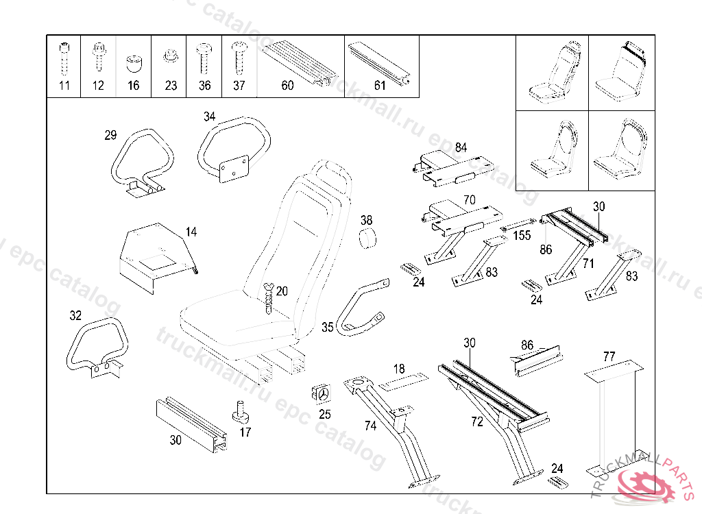 LOCKING CAP COVERING TO SEAT FRAMEWORK 36,5X42