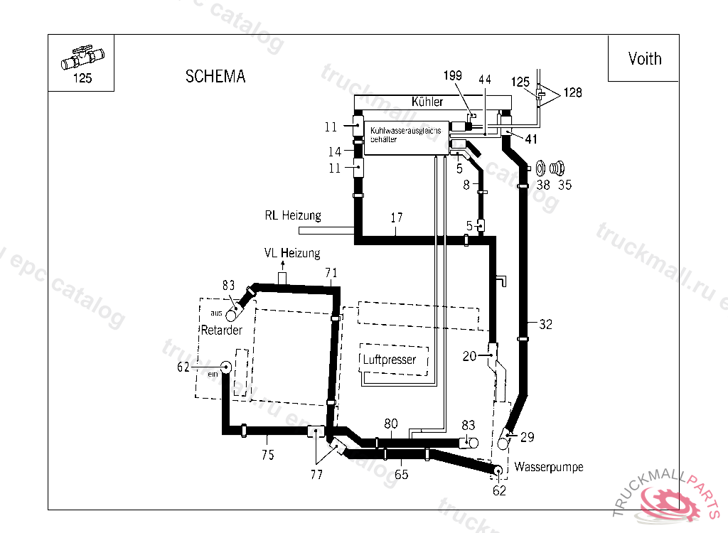 COOLING WATER PIPE RETURN, FROM RETARDER TO ENGINE