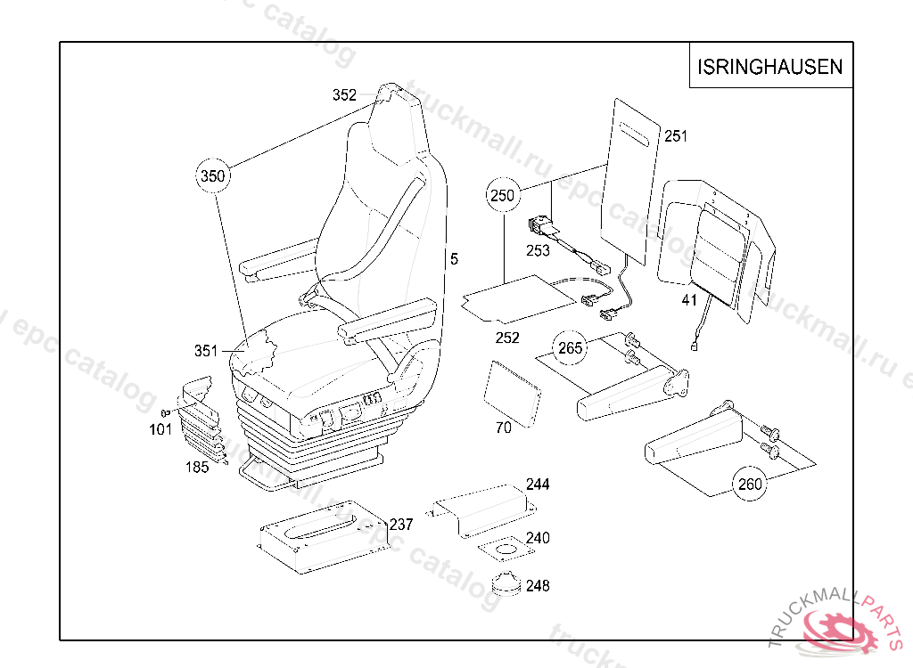 DRIVER SEAT RIGHT OPERATION, THREE-POINT BELT, ROTATING ISRI6860/875, DETERMINE COVER FABRIC VIA VEDOC "NFC 5117"
