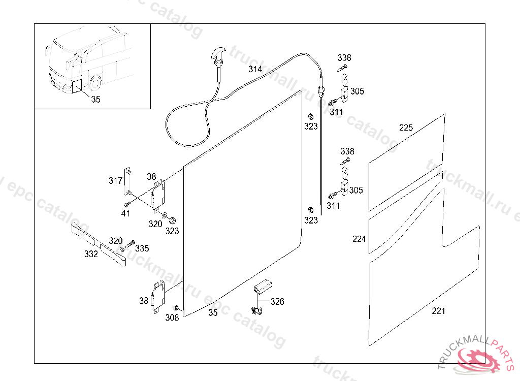 HINGED DOOR BELOW DRIVER'S WINDOW