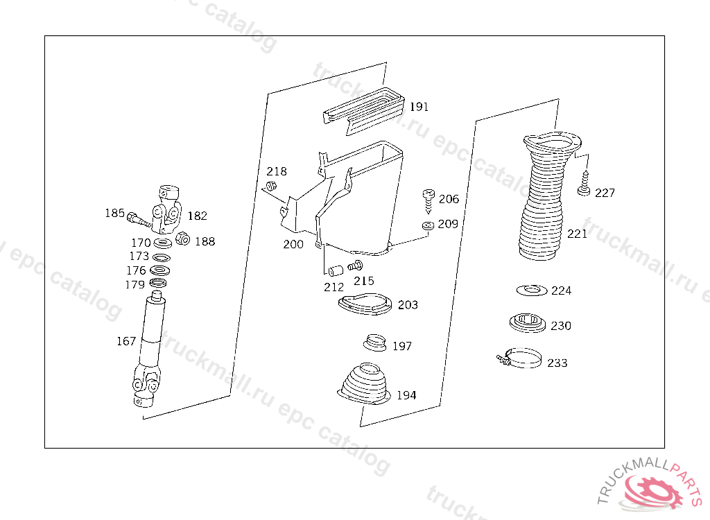 STEERING SHAFTLEMFOERDER, USED WITH SHORT MERCEDES-BENZ CAB