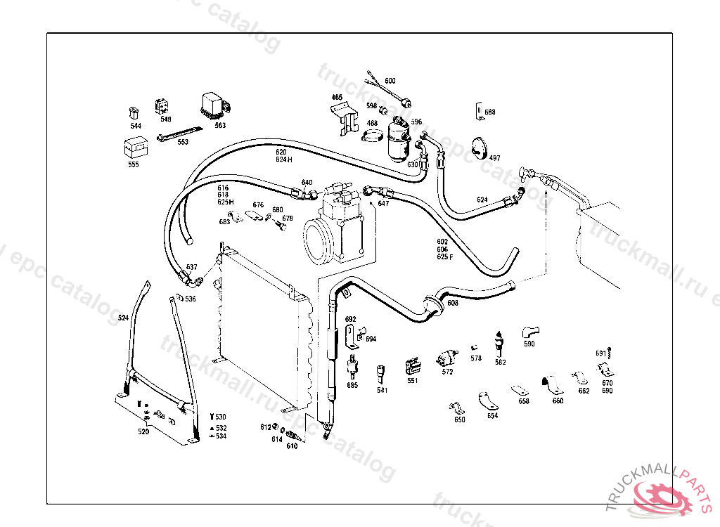 HOSE FROM COMPRESSOR TO CONDENSER 900 MM, FROM CHASSIS:114.060 102982 114.062 102303 114.072 101151 114.073 101101