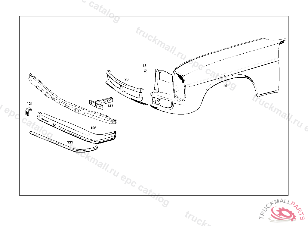 RADIATOR GRILLE SHELL , FROM CHASSIS: 005,017 044525 015 262195 105,107,108,117,119 082985 110 444285 114 012375 115 277301