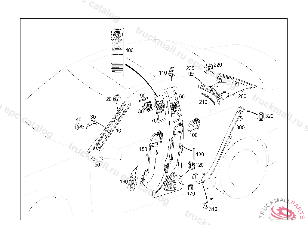 ESCUTCHEON IN B-PILLAR PANELING, RIGHT, Replaced By: A2116920859