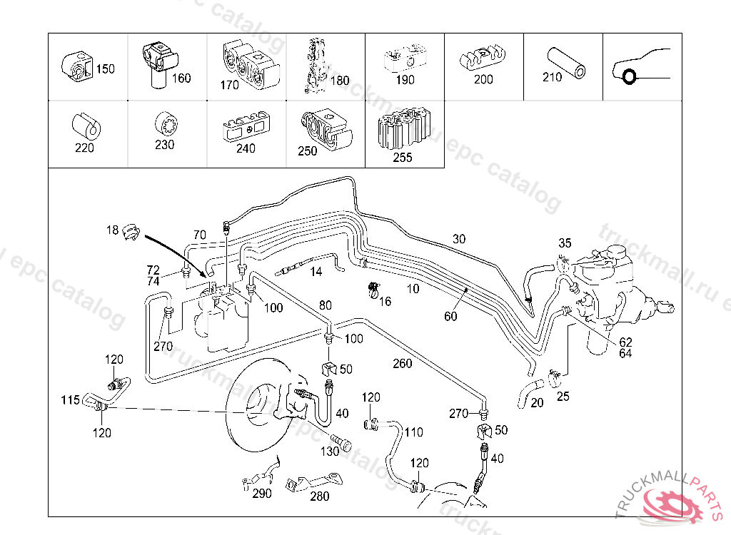 LINE HOLDER FASTENING, RIGHT FRONT WHEEL BRAKELINEAT FIREWALL, Replaced By: A0029951577