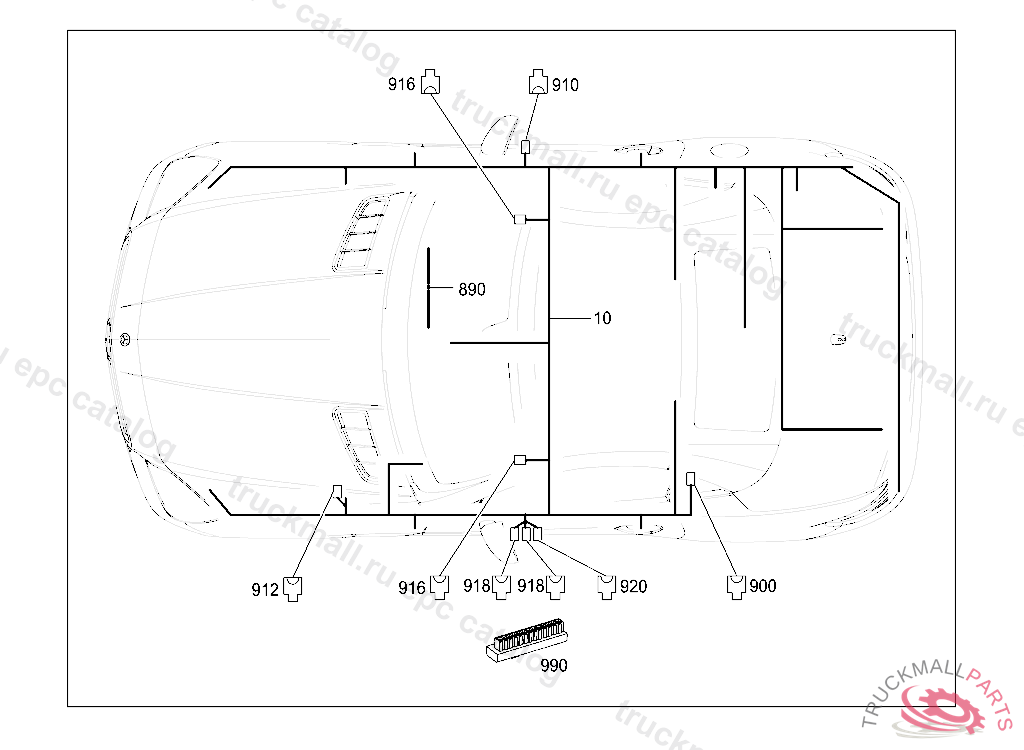 ELECTRICAL WIRING HARNESS FRAME FLOOR UNIT MAIN CABLE HARNESS, STATE IDENT NO. WHEN ORDERING THE CORRESPONDING SPECIAL EQUIPMENT IS CONTAINED IN THE WIRING HARNESS ACCORDING TO THE VEHICLE PRODUCTION NUMBER