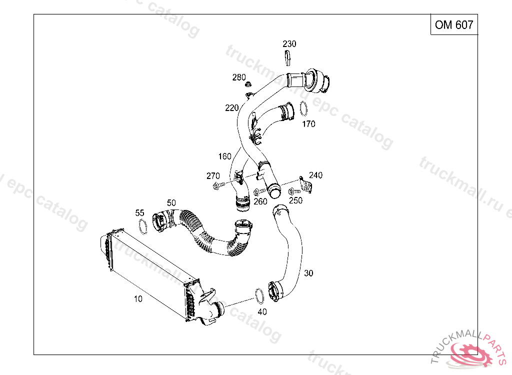 AIR MANIFOLD AT CHARGE AIR COOLER, RIGHT