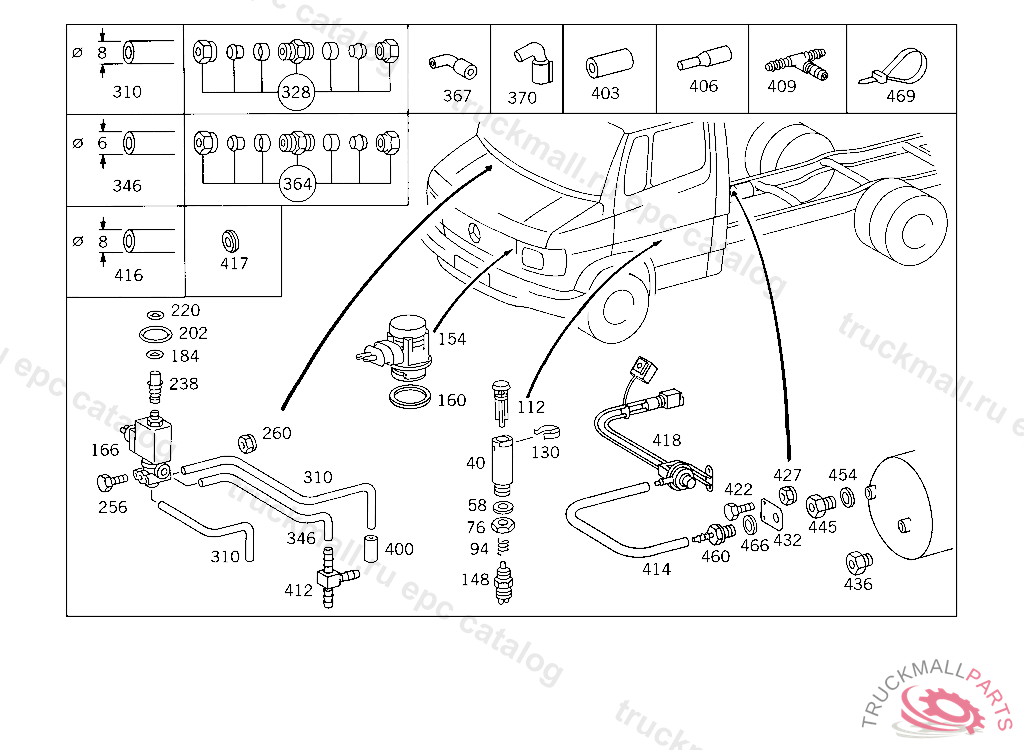 HOSE ENGINE TO REGENERATION VALVE RECHTS, F 125158 EXCEPT CODE 805 ALSO INSTALLED IN VEHICLE TO F 125157 WITH CODE 806