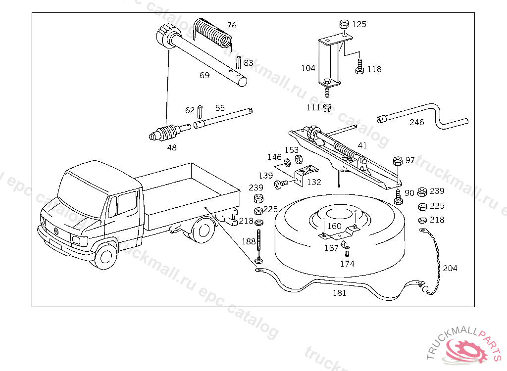 SPARE WHEEL HOIST , TO BE ADAPTED DURING ASSEMBLY, Replaced By: A6674000239, +001A6674030238