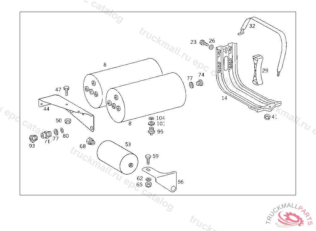 RESERVOIR COMPRESSED AIR 30 L, TO VOSS 232,5 9363665 812731 FOR VEHICLES WITH VOSS 230 CONNECTOR: ADD. MOUNT FITTING "A 004 997 82 72" WITH O-RING "A 000 987 04 46" AND THRUST RING "A 000 997 02 03" TO AIR RESERVOIR