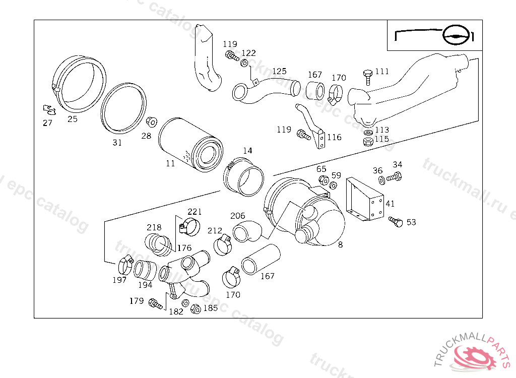 HOSE CLAMP FROM AIR CLEANER TO TRANSVERSE INTAKE PIPE, Replaced By: A0019951910