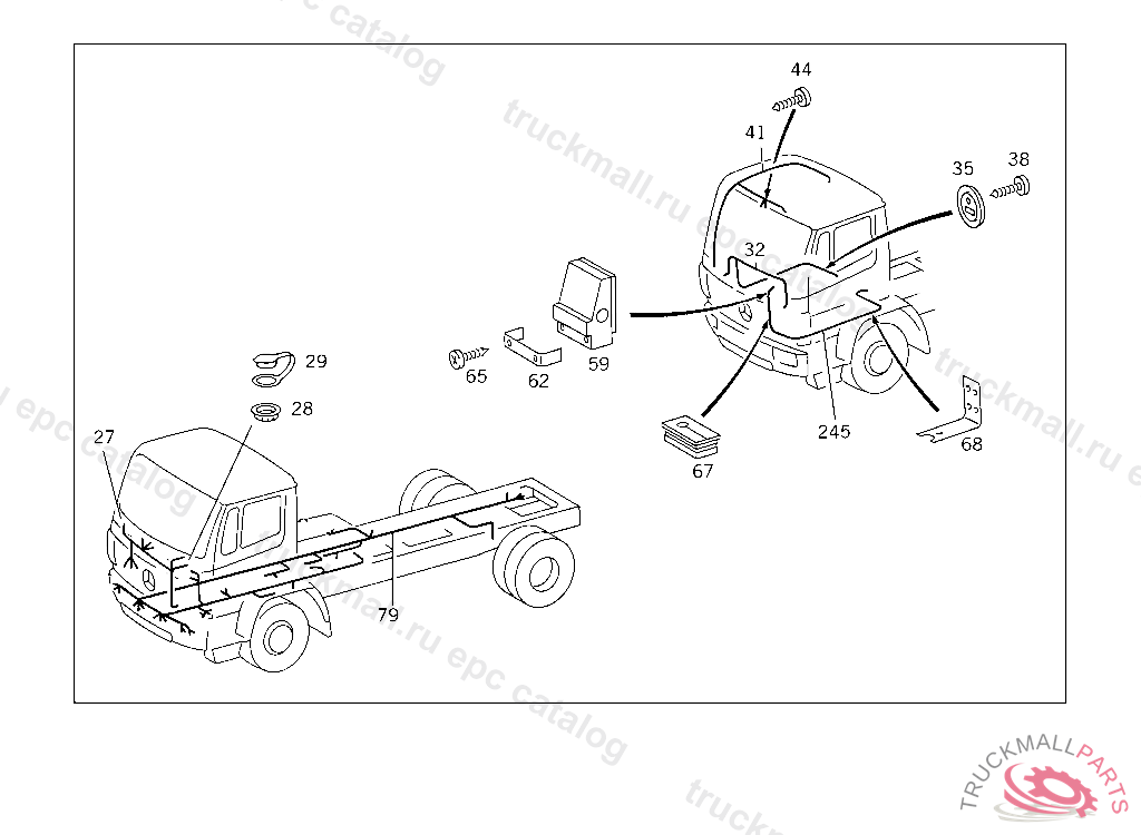 ELECTRIC CABLE FROM CAB PLUG-CONNECTION TO WASHER PUMP & TO CAB UNLOCKING MECHANISM