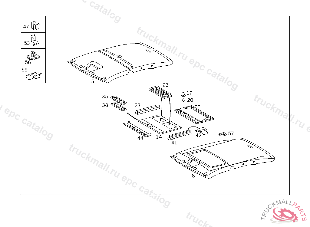 HEADLINER WITH SLIDING/LIFTING ROOF USED WITH GLASS VERSION, NO.7D04 INO.7D04 INO.8G12 INO.8G12 INO.8G12 INO.7D04 INO.7D04INO.7D04INO.7D04INO.7D04I