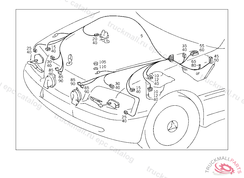 INSULATING SLEEVETO 000 546 83 40, A 218852 EXCEPT FOR A 103237 - A 218851 WITH CODE 030 F 190065 EXCEPT FOR F 159752 - F 190064 WITH CODE 030 AS OF IDENT-NO.: FOR HEADLAMP WIRING HARNESS REFER TO TU 54/121, WITH AIR CONDITIONER REFER TO TU 54/485 ALSO INSTALLED ON A 219847