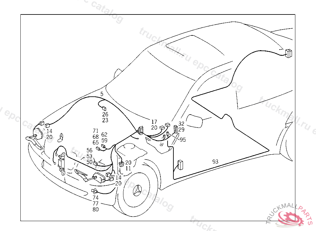 CABLE HARNESS RUN-ON CONTROL OF CENTRAL LOCKING MECHANISM PUMP, A 218852 EXCEPT FOR A 103237 - A 218851 WITH CODE 030 F 190065 EXCEPT FOR F 159752 - F 190064 WITH CODE 030 AS OF IDENT-NO.: FOR HEADLAMP WIRING HARNESS REFER TO TU 54/121, WITH AIR CONDITIONER REFER TO TU 54/485 ALSO INSTALLED ON A 219847