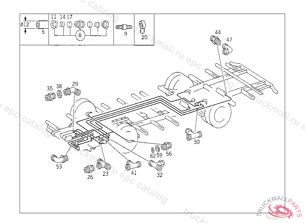 LINE FROM FOUR-CIRCUIT PROTECTIVE VALVE TO AIR RESERVOIR 9X12 MM, LENGTH AVAILABLE 3000 MM