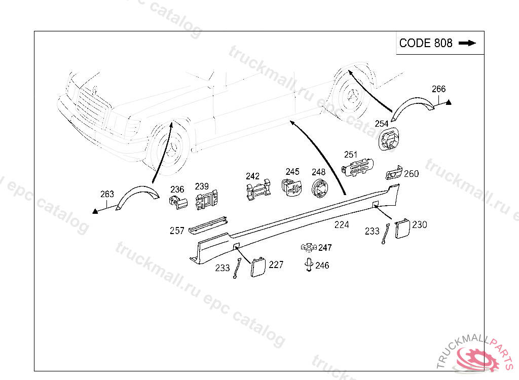 PANELLING RIGHT AMG, TO BE ADAPTED TO VEHICLE PRIOR TO PAINTING TO BE PAINTED PRIOR TO INSTALLATION A 519674 F 619721 EXCEPT CODE 807 ALSO INSTALLED IN VEHICLE TO A 519673, F 619720 WITH CODE 808