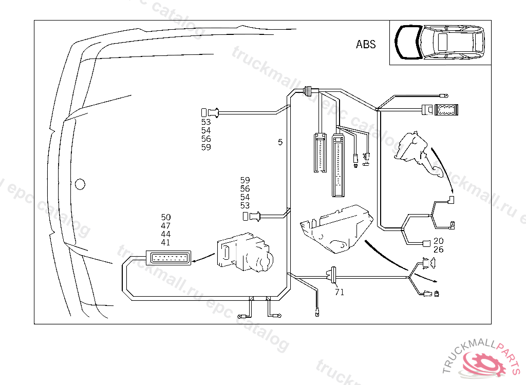 CABLE HARNESS ANTI-LOCK BRAKING SYSTEM, F 619721 EXCEPT CODE 807 ALSO INSTALLED IN VEHICLE TO F 619720 WITH CODE 808 F 894083 EXCEPT CODE 800 ALSO INSTALLED IN VEHICLE FROM F 894084 WITH CODE 809