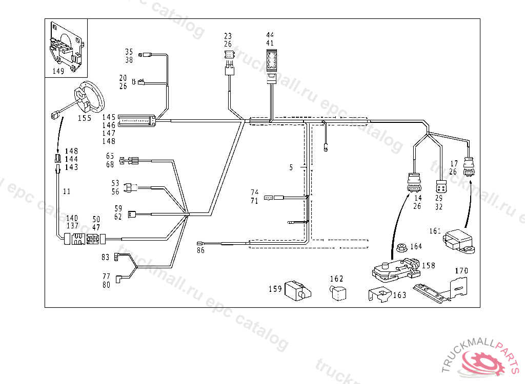 CABLE HARNESS FRAME FLOOR UNIT, F 894084 EXCEPT CODE 809 ALSO INSTALLED IN VEHICLE TO F 894083 WITH CODE 800
