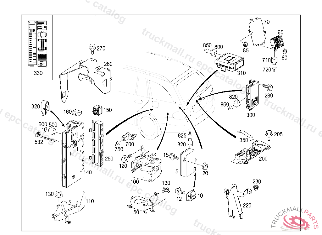 ELECTRICAL BASIC MODULE SIGNAL ACQUISITION AND ACTUATION MODULE WITH REAR FUSE AND RELAY MODULE SAM/SRB N10/2, A 87431220050630806 X 19596520050930806, Replaced By: A2115458701