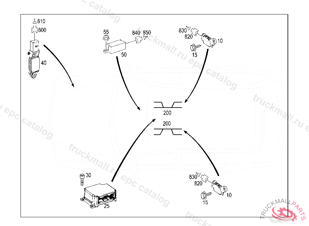 TRIGGER DEVICE AIRBAG CONTROL MODULE TO TUNNEL ROOF REINFORCEMENT BOSCH, A 07258620060228 FIRST EXHAUST STOCK OF OLD PARTS UP TO IDENT NO. A 15174120080930, Replaced By: A2118705885