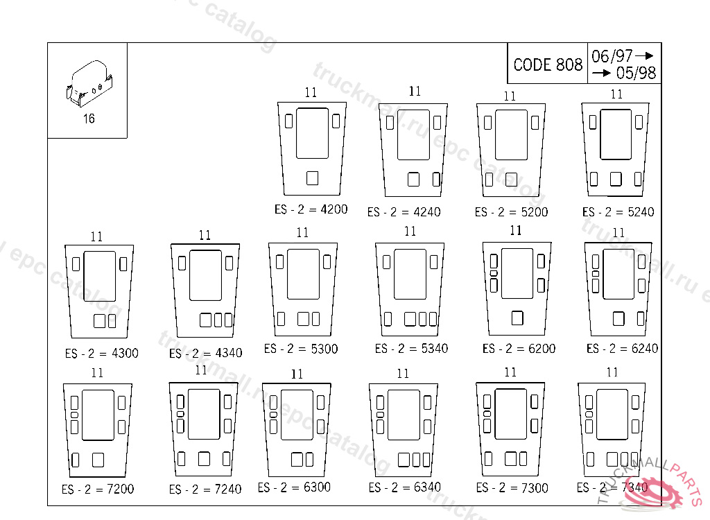 COVERING ATTENTION! PLEASE STATE THE ADDITIONAL CODE ES2,SEE ILLUSTRATION:, F 619721 EXCEPT CODE 807 ALSO INSTALLED IN VEHICLE TO F 619720 WITH CODE 808 F 758207 EXCEPT CODE 809 ALSO INSTALLED IN VEHICLE FROM F 758208 WITH CODE 808