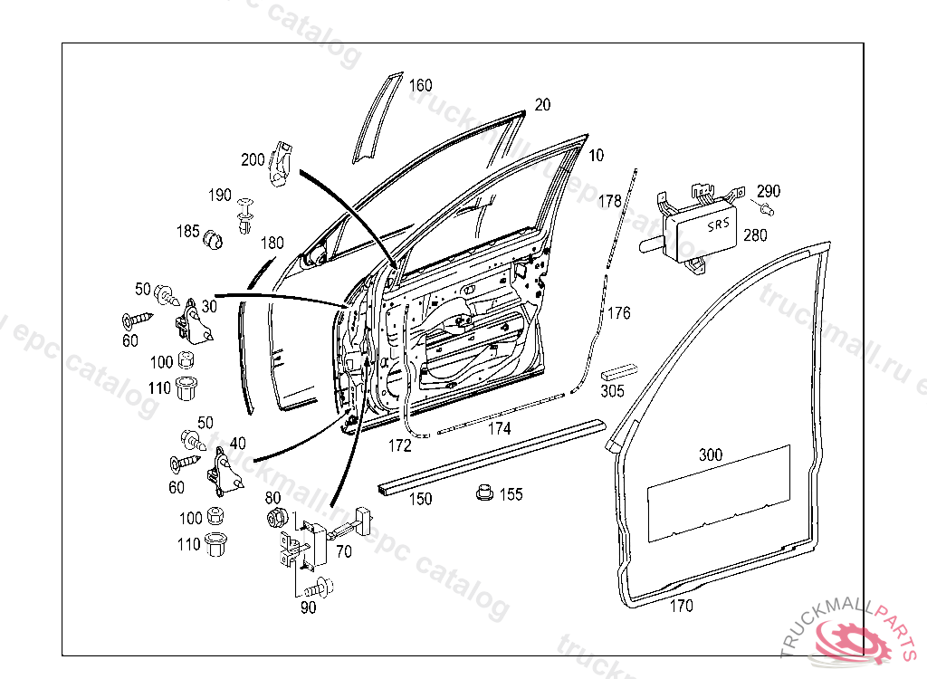 HOLDING FIXTURE SIDEBAG ON DRIVER DOOR, RIGHT, Replaced By: A2038602605, +001A2038602505