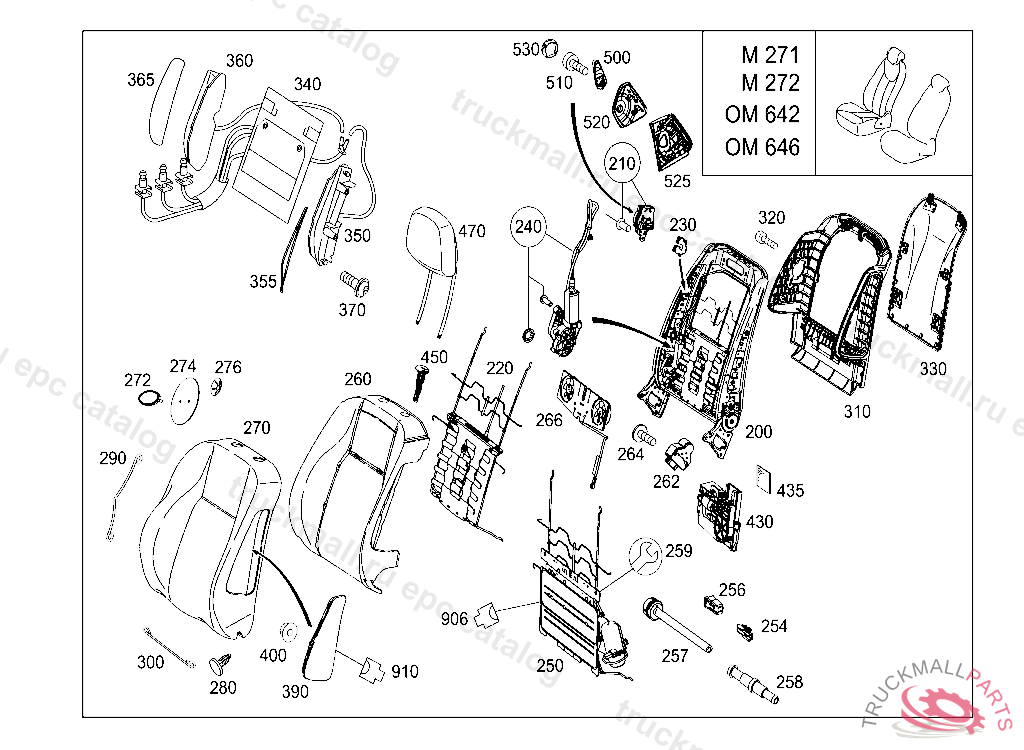 BACKREST SHELL TO BACKREST FRAME, FIRST EXHAUST STOCK OF OLD PARTS UP TO IDENT NO. A 39613220100331 L 03964220100430 V 00250220100430 F 49920120100331, Replaced By: A2049109804