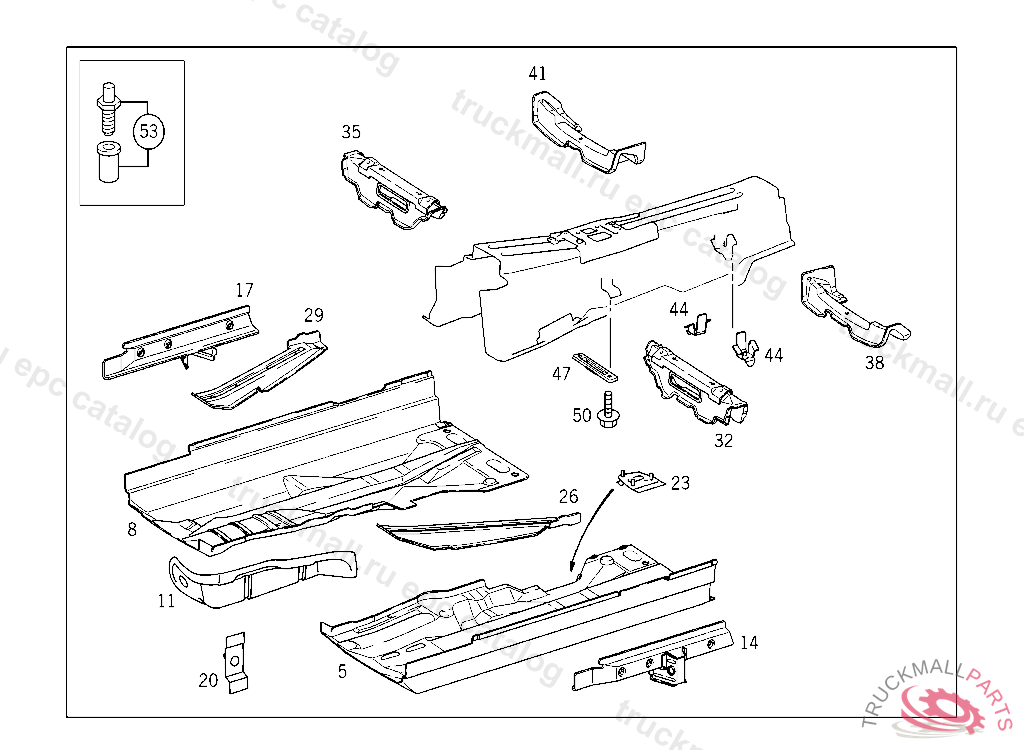 FLOOR , FIRST EXHAUST STOCK OF OLD PARTS UP TO IDENT NO.A 597176 / X 007198, Replaced By: A2106100960, +001A2106103325