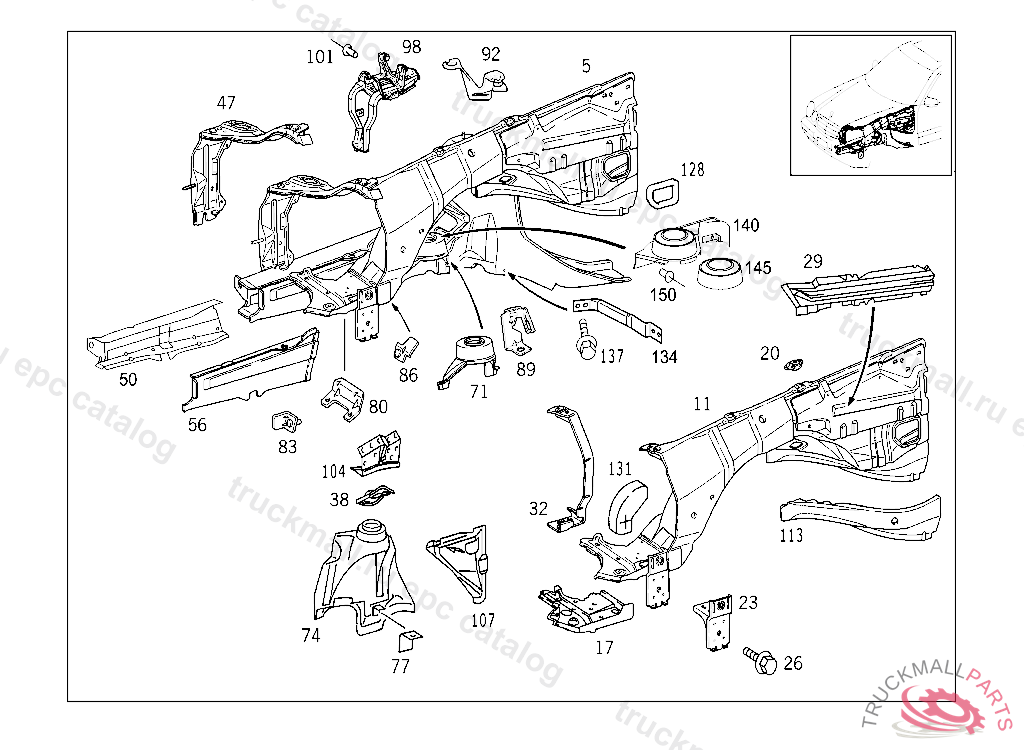 WHEELHOUSE , FIRST EXHAUST STOCK OF OLD PARTS UP TO IDENT NO.A 514205 / X 004008, Replaced By: A2106204961