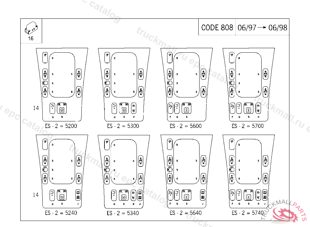 ORNAMENTAL COVER ATTENTION! PLEASE STATE THE ADDITIONAL CODE ES2,SEE ILLUSTRATION: 68/338-03,04, A 394036 EXCEPT CODE 807 ALSO INSTALLED IN VEHICLE TO A 394035 WITH CODE 808