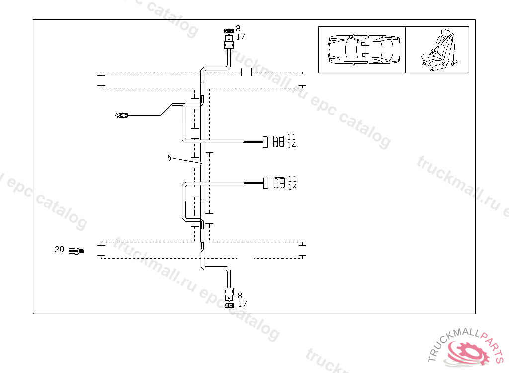 CABLE HARNESS SAFETY BELT COMFORT VERSION, A 698507 X 012425 EXCEPT CODE 809 ALSO INSTALLED IN VEHICLE FROM A 698508, X 012426 WITH CODE 808