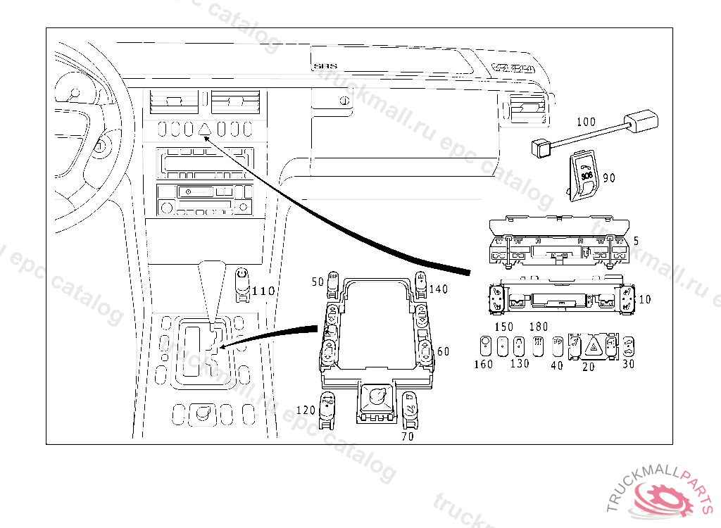 SWITCH HAZARD WARNING FLASHER SYSTEM, REARWINDOW WIPER, INT. OP. CENTRAL LOCKING, F 619721 EXCEPT CODE 807 ALSO INSTALLED IN VEHICLE TO F 619720 WITH CODE 808