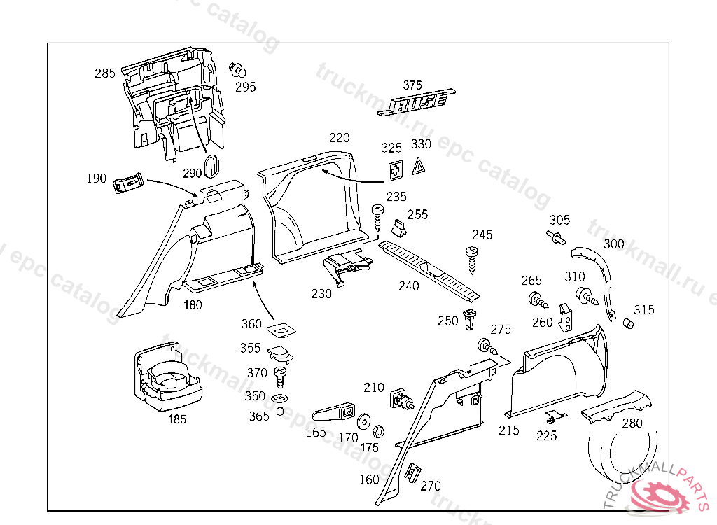 GUIDE SIGN AT COVERING LOADING COMPARTMENT REAR RIGHT