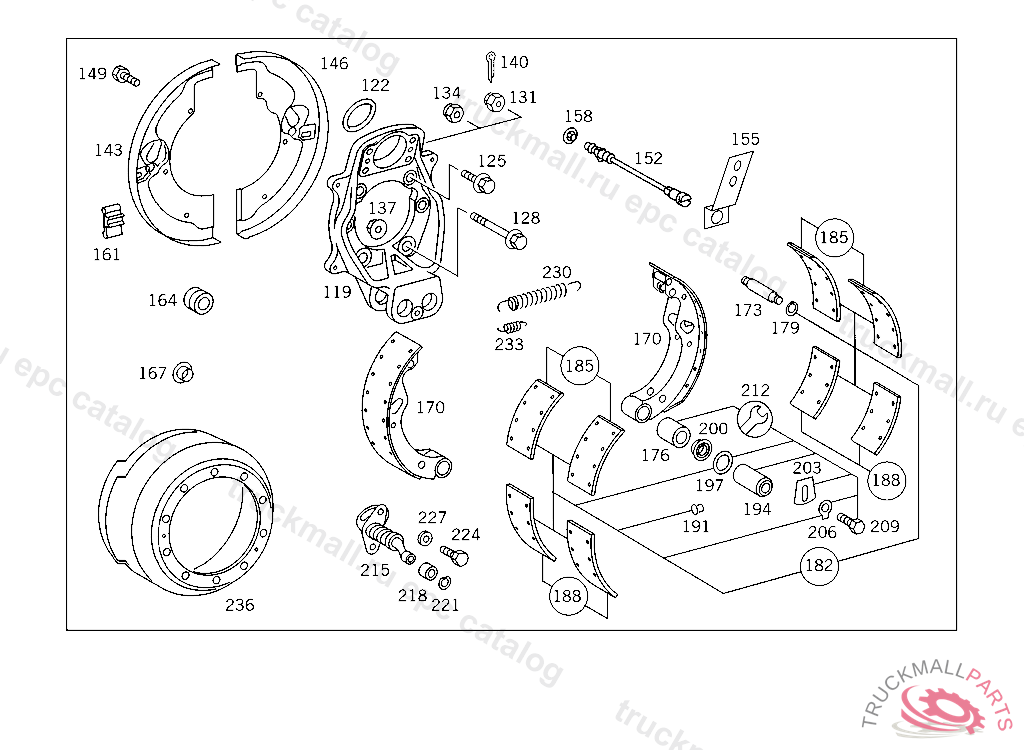 BRAKE DRUM , FIRST EXHAUST STOCK OF OLD PARTS UP TO FRONT AXLE F 010413 ONLY REPLACEABLE BY PAIRS, Replaced By: A6774210401, +001A6754210530