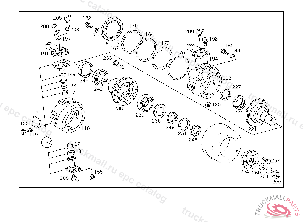 KINGPIN , FIRST EXHAUST STOCK OF OLD PARTS UP TO FRONT AXLE 2 452902, Replaced By: A3855860033