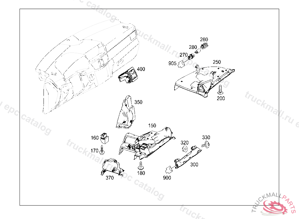 COVER PASSENGER SIDE, BELOW INSTRUMENT PANEL, FIRST EXHAUST STOCK OF OLD PARTS UP TO IDENT NO. A 05436320120424 9051QFT218A3015 BLACK, Replaced By: A2126807308