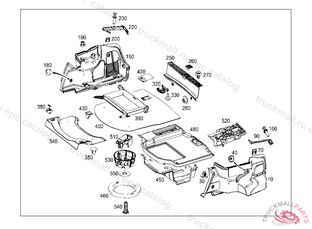 COVER TRUNK FLOOR FRONT, FIRST EXHAUST STOCK OF OLD PARTS UP TO IDENT NO. A 28551820100630 L 01315220101130 V 00118220101130 9051QFT212A0665 BLACK, Replaced By: A2126930033