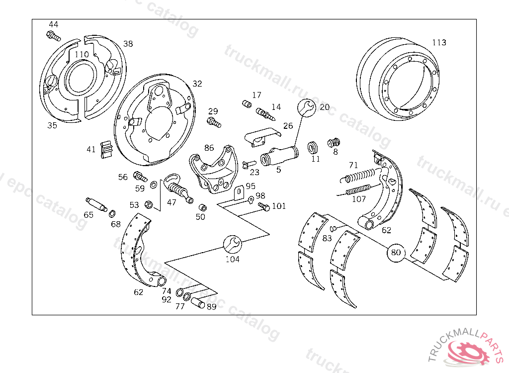 BRAKE LINING (PARTS KIT) (BRAKE LINING 17.70 MM,8X 360 421 08 10),796991, 10/20, 790759, 50/60 360.0 UP TO IDENT NO. 4 337020, FROM IDENT NO. 4 337021,SEE MICROFICHE 103