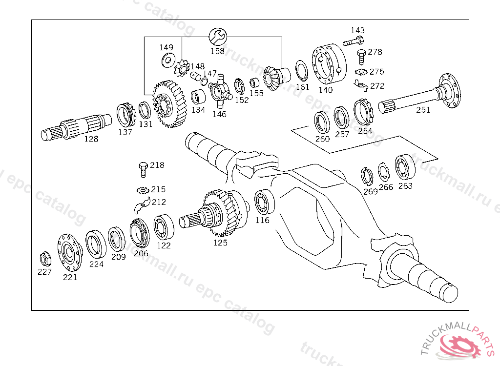 DIFFERENTIAL SPIDER , FIRST EXHAUST STOCK OF OLD PARTS UP TO REAR AXLE V 138069, Replaced By: A6593530020, +004A6593530014, +001A3463530326, +004A6593530050, +004A6593530051, +004A6593530151