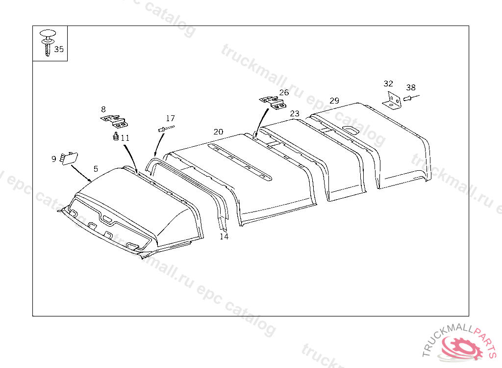 HEADLINER FOR LOADING COMPARTMENT SLIDING DOOR ON RIGHT AND ELEC.TILTING/SLIDING ROOF, Replaced By: A9016902550