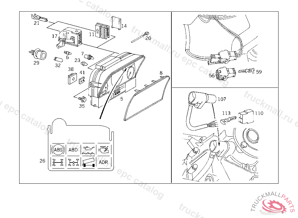 INSTRUMENT CLUSTER WITH OUTBOARD TEMPERATURE INDICATOR WITHOUT TACHOMETER OM601/602