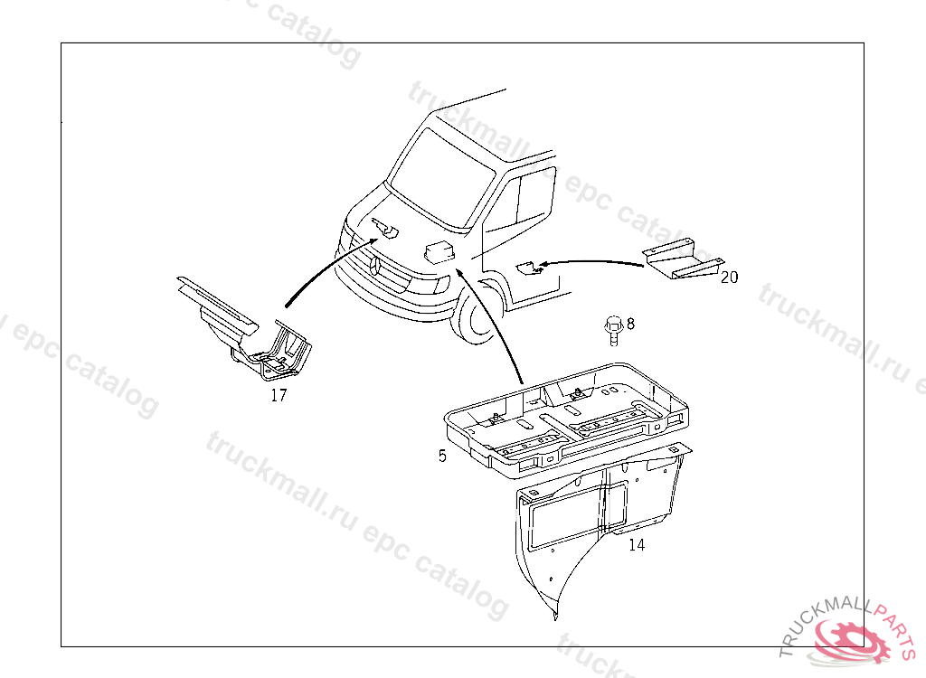 SCREW BRACKET TO CAB REAR PANEL M 8X20