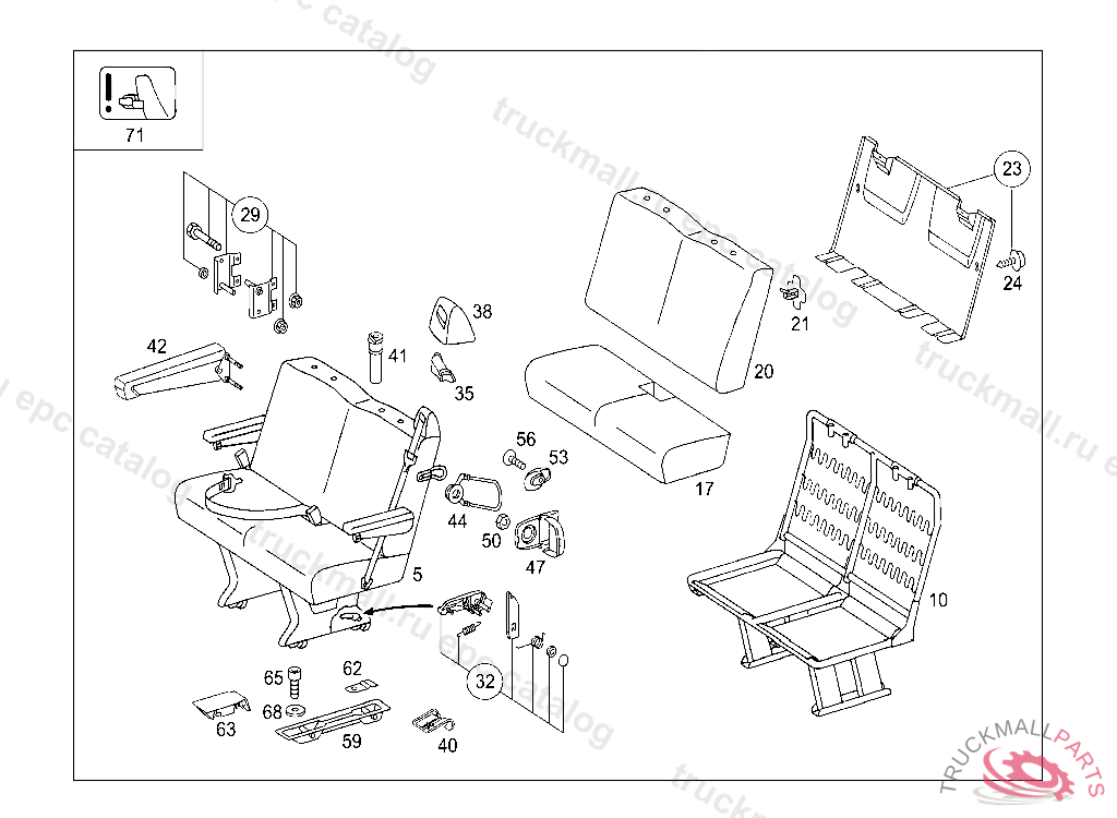 DOUBLE OCCUPANCY SEAT DOUBLE OCCUPANCY,VELOURS "CATANO",R 293086 IF REQUIRED ARMREST MUST BE ORDERED SEPARATELY