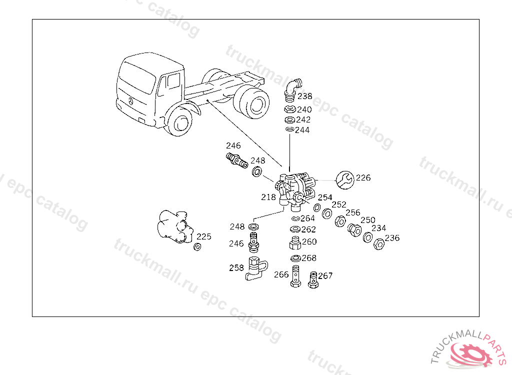 ELBOW FITTING FOUR-CIRCUIT PROTECTIVE VALVE, CONNECTION: "1", 620.415 UP TO CHASSIS 5 014668 620.416 UP TO CHASSIS 5 000515 620.417 UP TO CHASSIS 4 972023