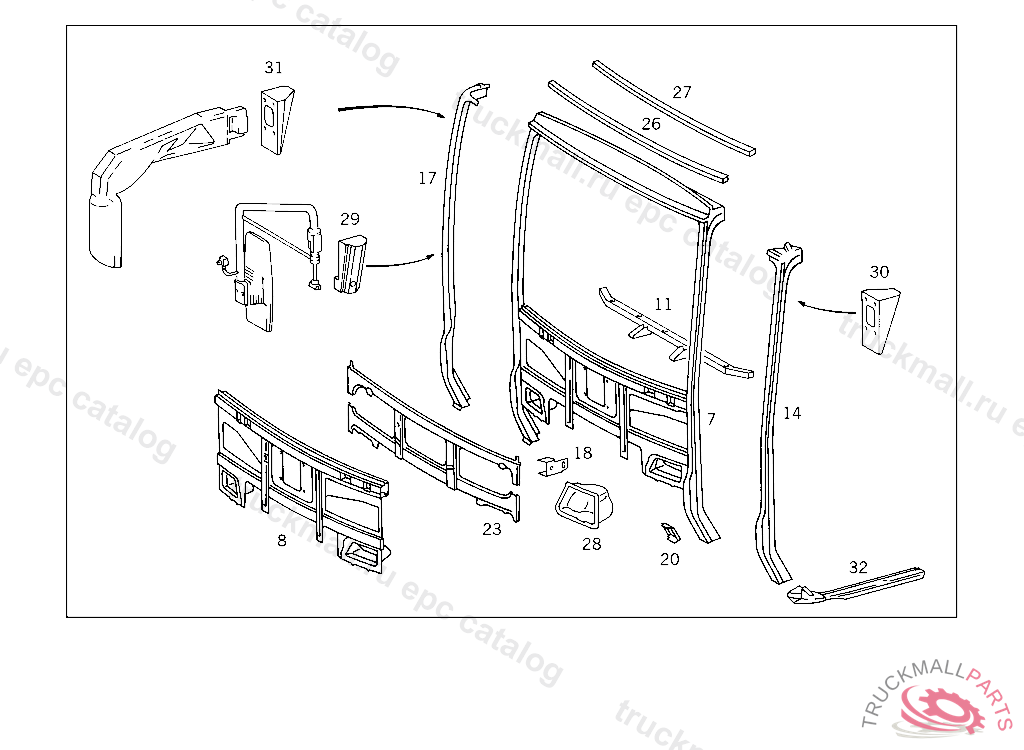 PILLAR RIGHT, FOR NEW MIRROR VERSION, ORDER MIRROR BRACKET TO BE ADAPTED DURING ASSEMBLY