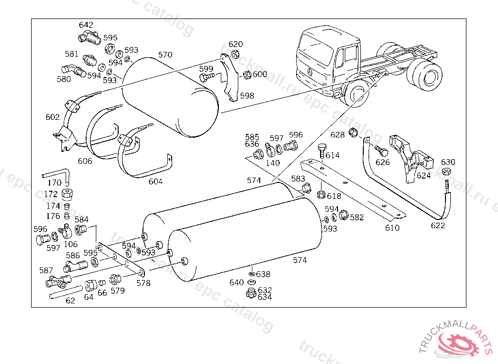 BASE AIR RESERVOIR,STRAP, 620.415 UP TO CHASSIS 5 014668 620.416 UP TO CHASSIS 5 000515 620.417 UP TO CHASSIS 4 972023