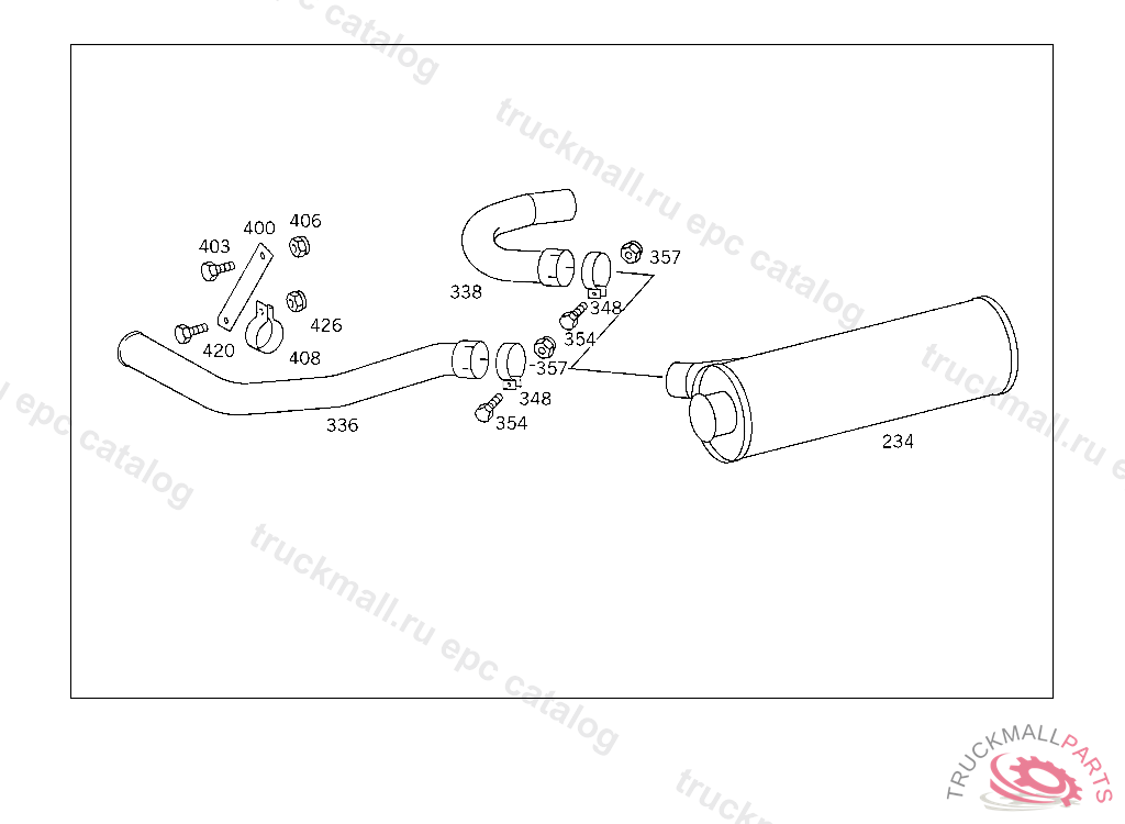 REAR EXHAUST PIPE , WITH PARKING BRAKE VALVE IN INSTRUMENT PANEL