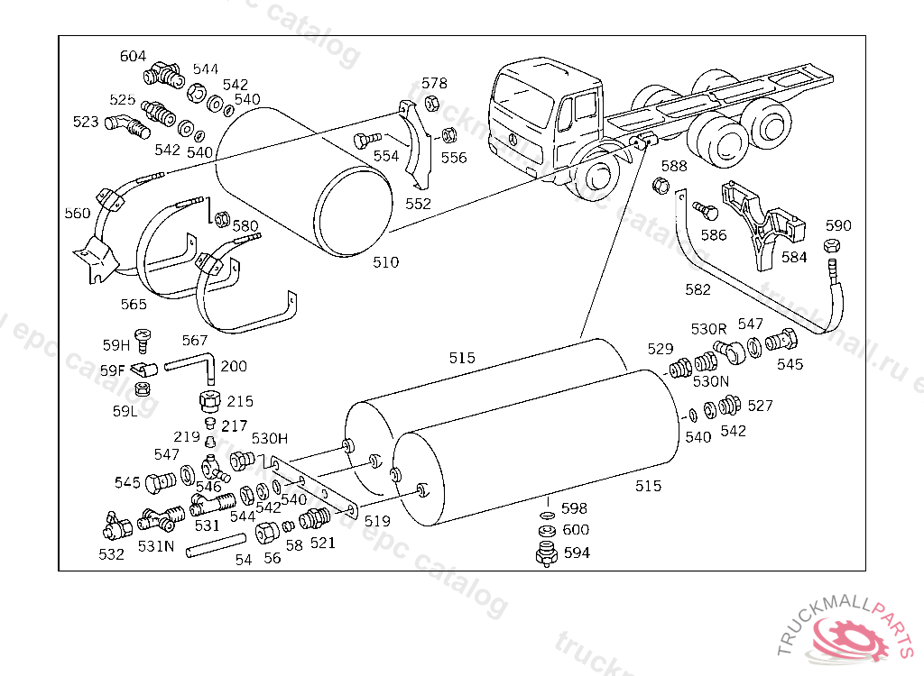CROSS FITTING AIR RESERVOIRS I AND II,4 821954 620.415 UP TO CHASSIS 5 014668 620.416 UP TO CHASSIS 5 000515 620.417 UP TO CHASSIS 4 972023