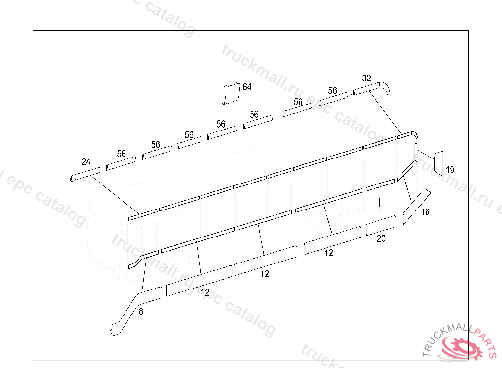 DRIP MOULDING LEFT TOP 2215,5MM, TO BE ADAPTED DURING ASSEMBLY